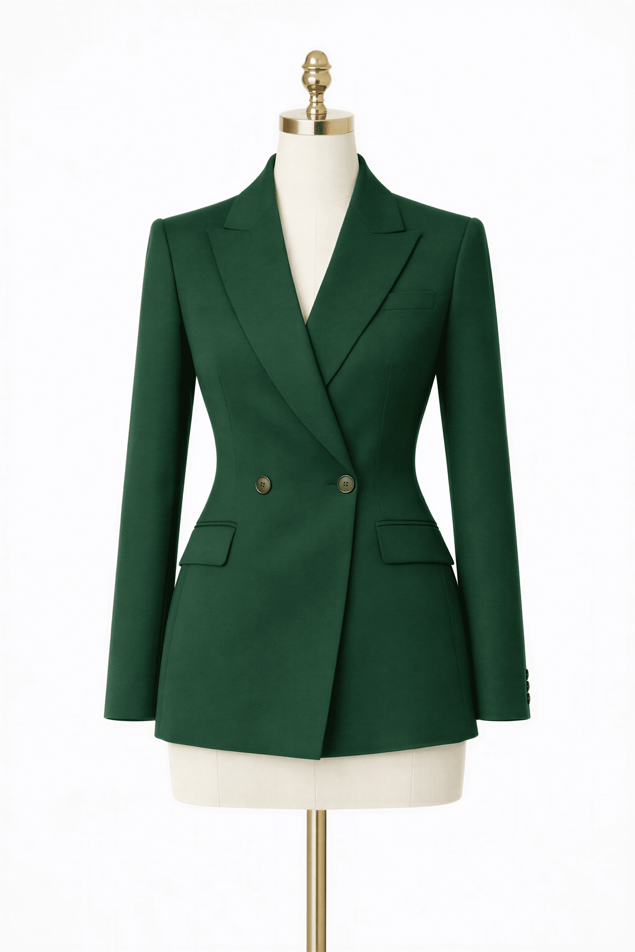 Double-breasted front with peak lapels
