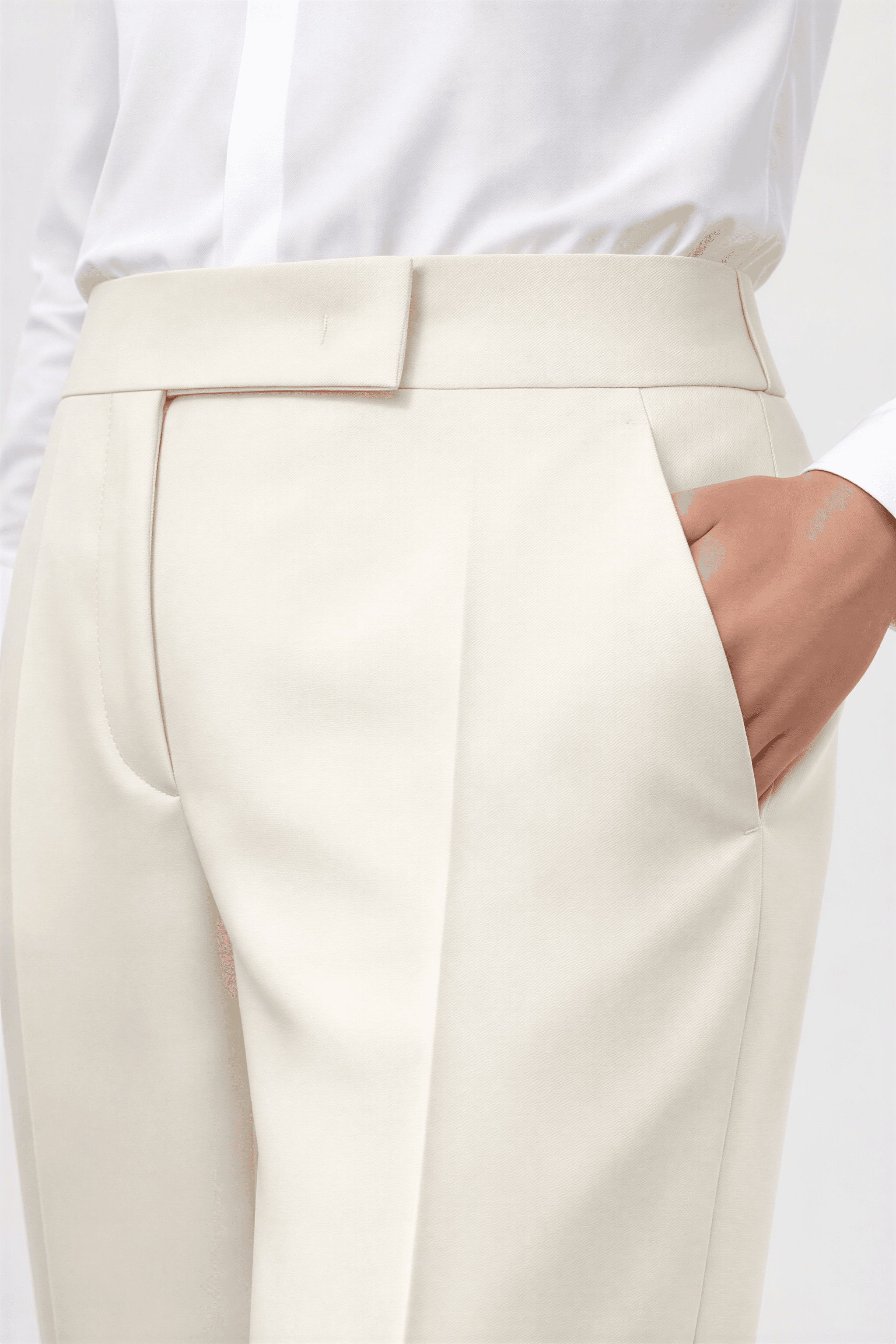 Avoid machine washing, hand washing, or tumble drying, as these may cause shrinkage, warping, or loss of sharp tailoring.