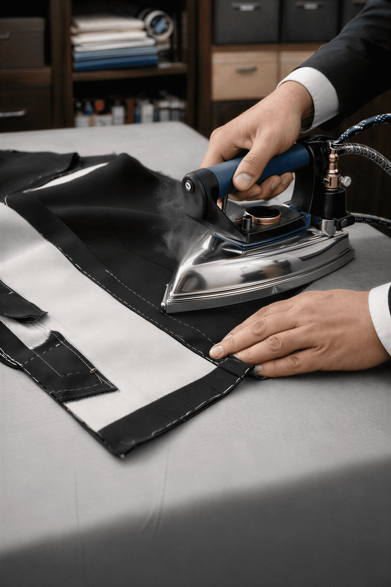 We source premium natural fabrics engineered for durability, comfort, and refined presence — materials that hold their structure, maintain elegance throughout the day, and elevate the silhouette without excess. Even the smallest elements, from zippers to buttons, undergo meticulous selection to ensure they uphold the same standard of excellence as the garment itself. Nothing is decorative; everything is purposeful.